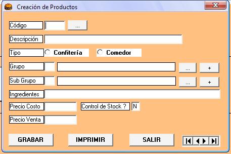 Alta de productos con detalle de ingredientes para impresión de catálogo.