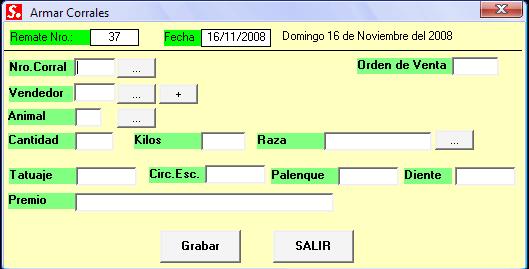 Se ingresan los corrales con datos del vendedor.