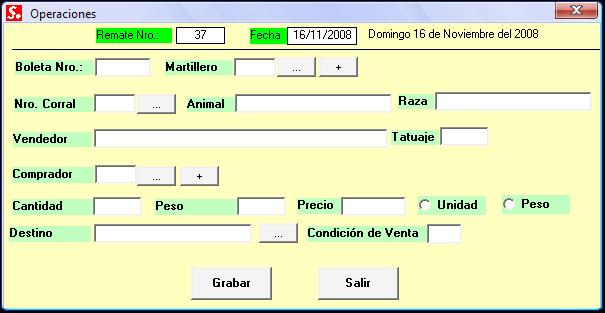 Se ingresan los datos del remate como Nro, Fecha y tipo de remate (Común o Feria).