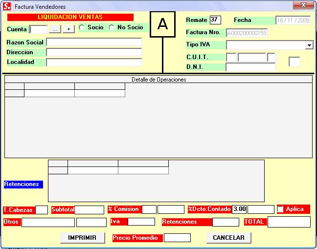 Se emiten planillas de remate, compradores, vendedores.